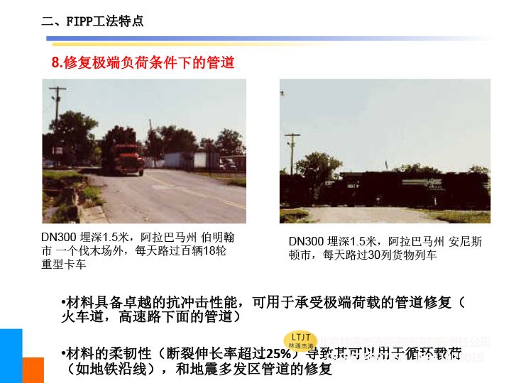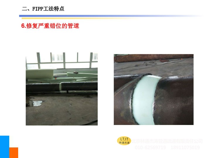 2、可修复存在管道错口(5cm以内)的管道及小于45°的弯曲管道,亦可修复变径管道及形状不规则的管道。